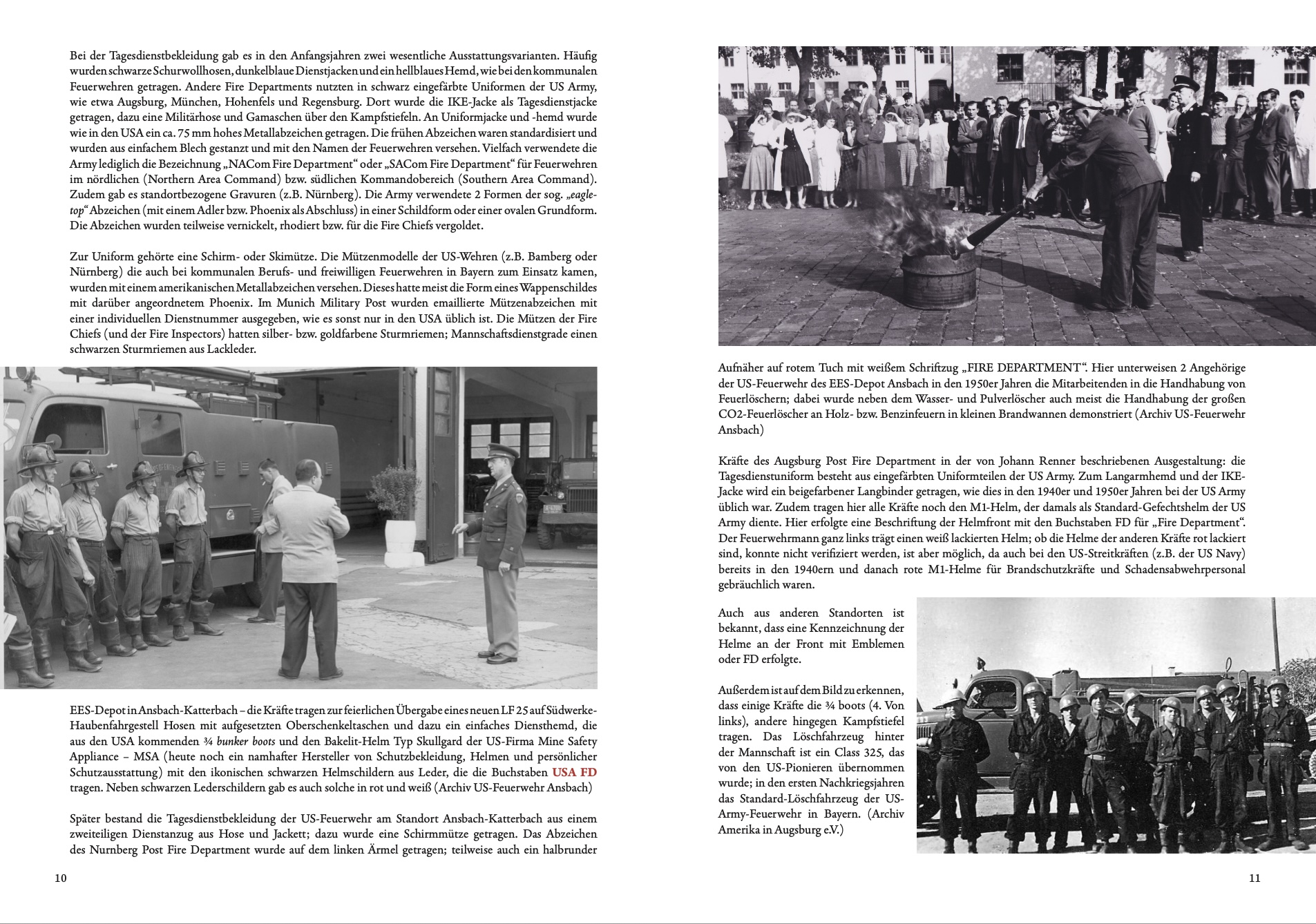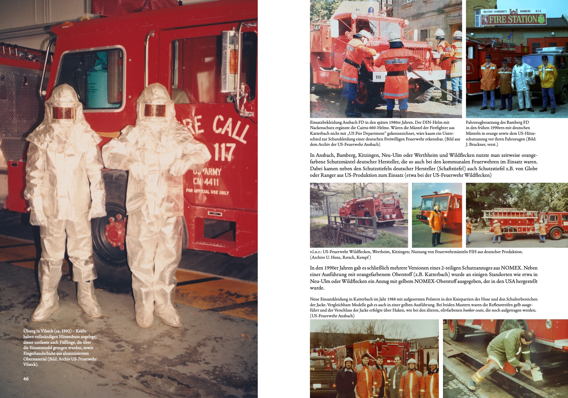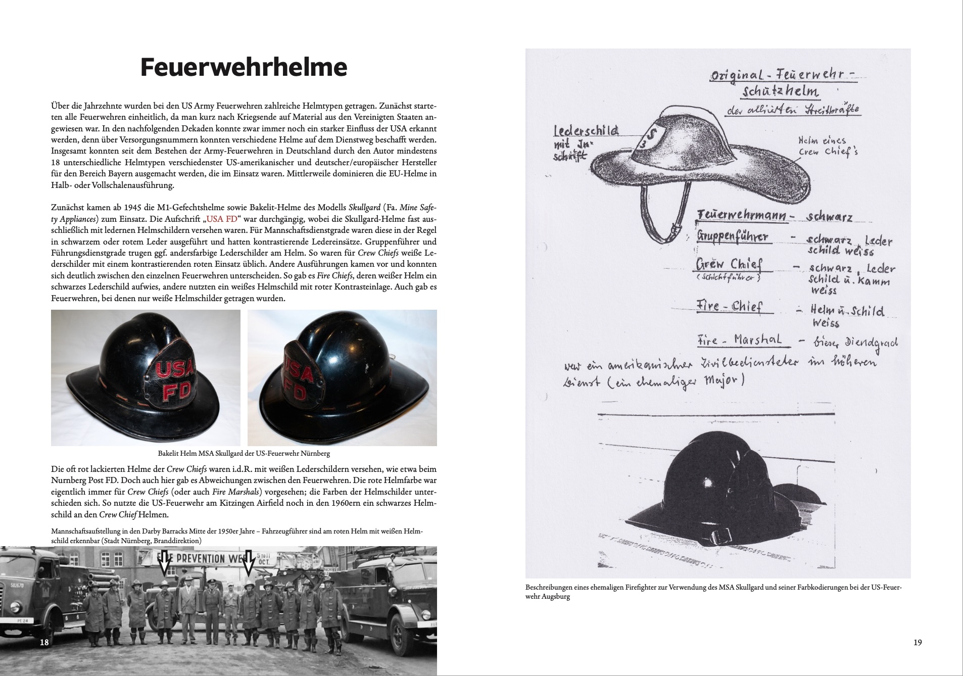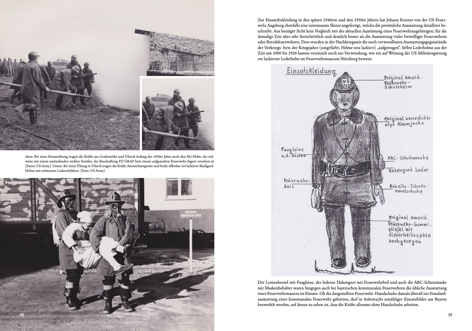 Es wird dabei ein umfassender Einblick dargestellt, in die Entwicklung der Schutzkleidung und Helme der US-Feuerwehren in Bayern und in den anderen Teilen der Bundesrepublik.